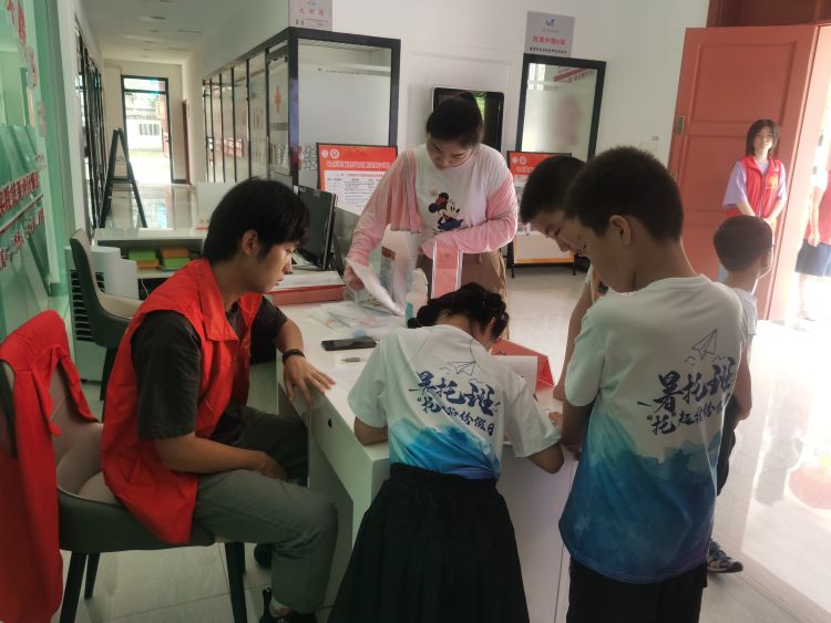 签字结束后,志愿者们带领孩子前往新时代文明实践中心门口集体合影,庆祝暑托班正式开班,留下了珍贵而又美好的记忆。