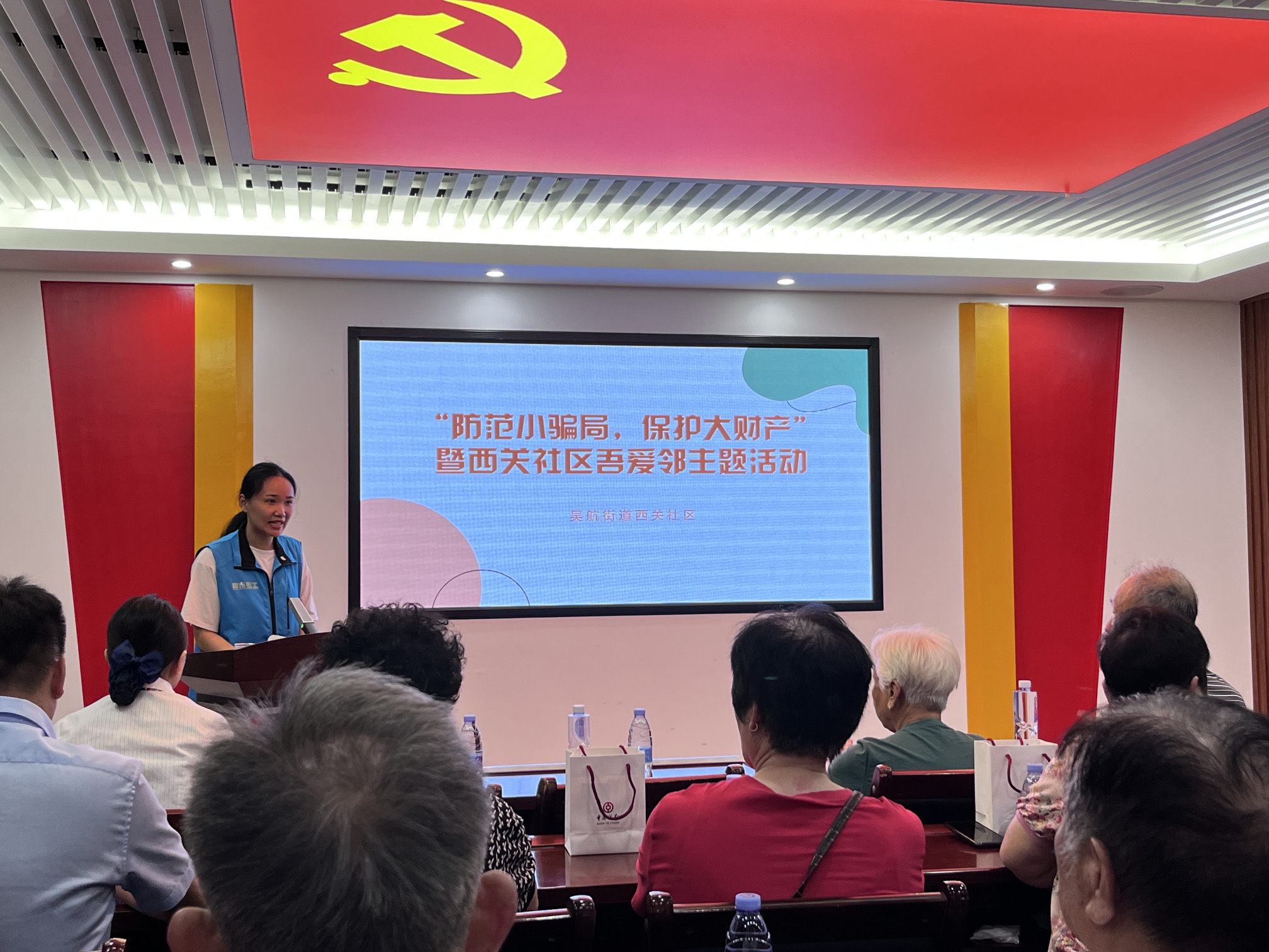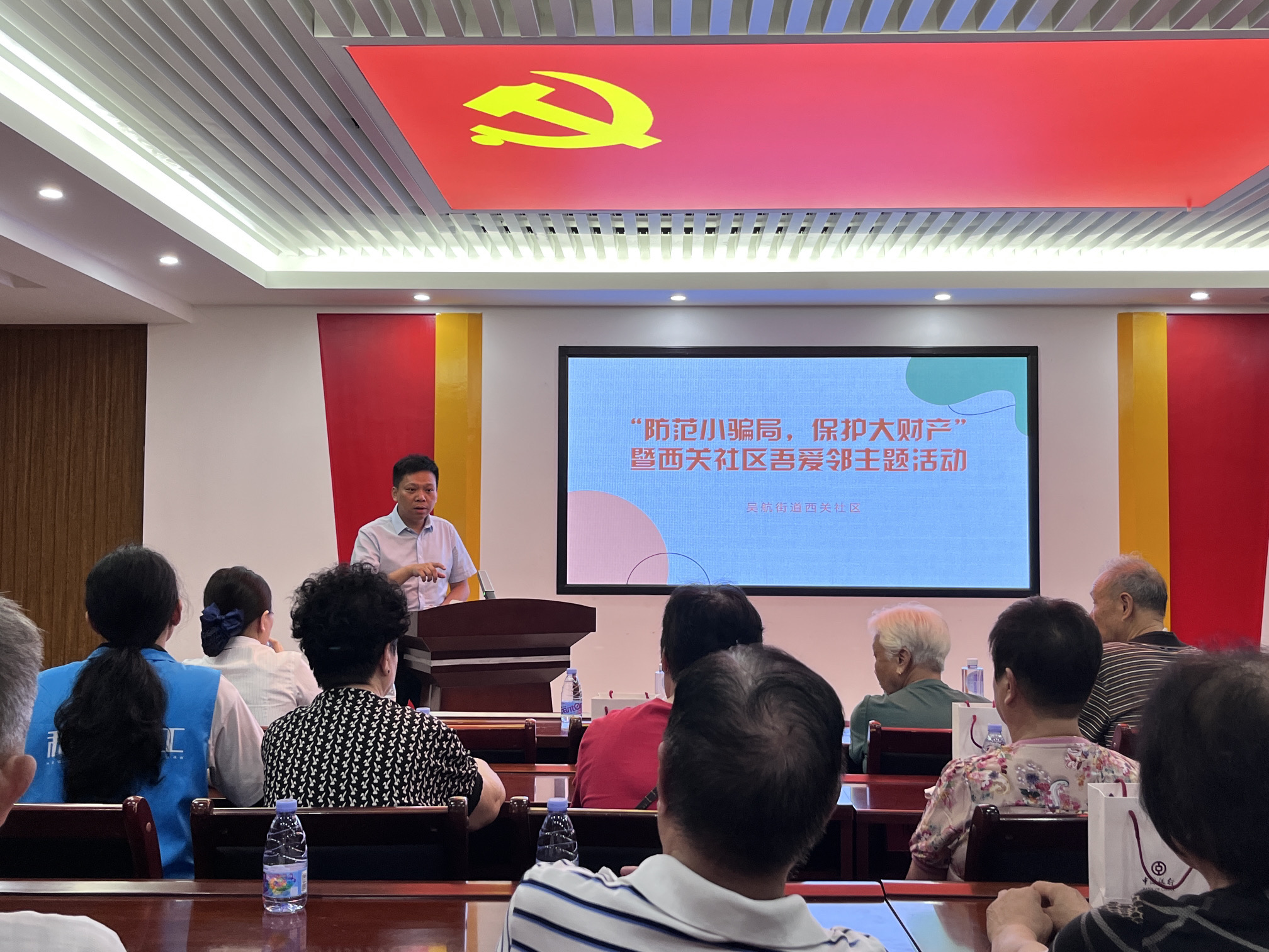 为进一步提高西关社区居民识别、防范电信诈骗意识,提升自我维权意识,加大防范社区内宣传力度,保证居民财产安全,维护社区内治安稳定,西关社区与福州市长乐区和光社会工作发展中心携手共建单位福州市长乐区司法局、中国银行长乐河下街支行党支部于7月26日在西关社区居委会三楼开展“防范小骗局,保护大财产”普法维权暨西关社区吾爱邻活动。