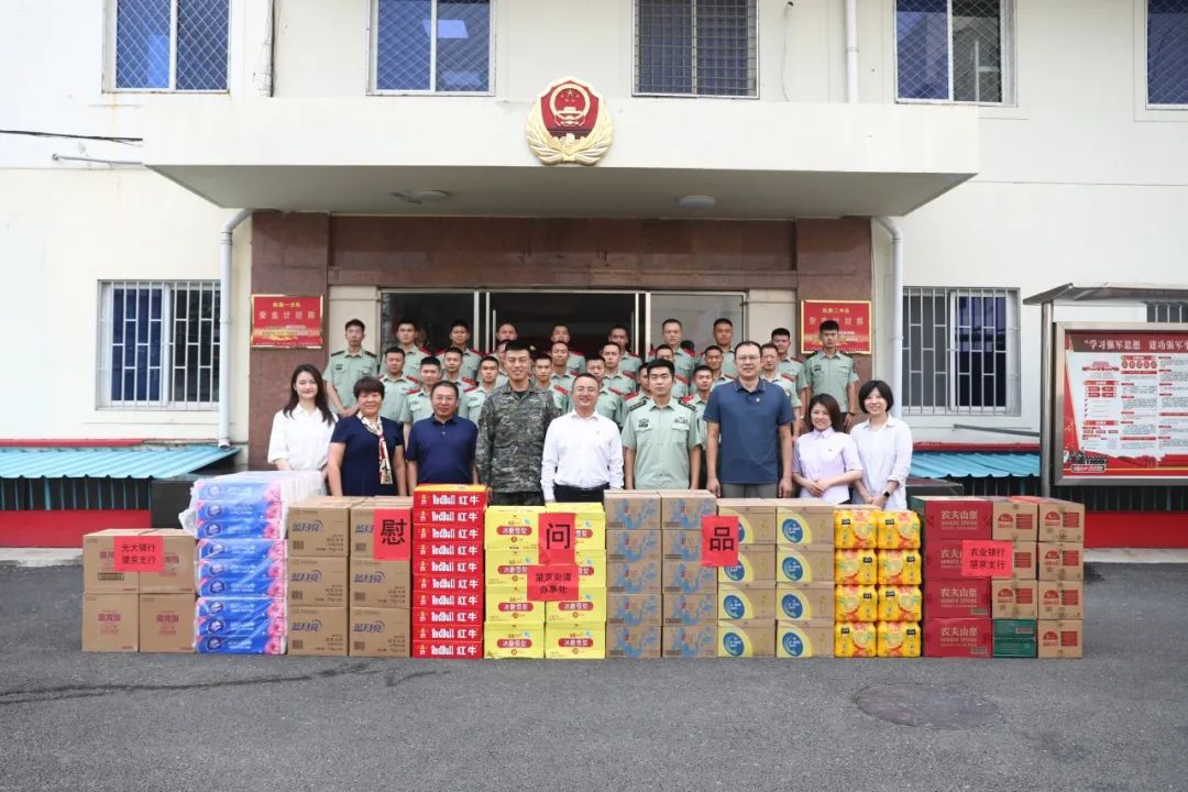 随后,望京街道领导班子成员来到辖区武警部队,与辖区单位农业银行望京东支行、光大银行望京支行代表一同向武警部队送上慰问品。