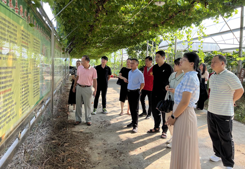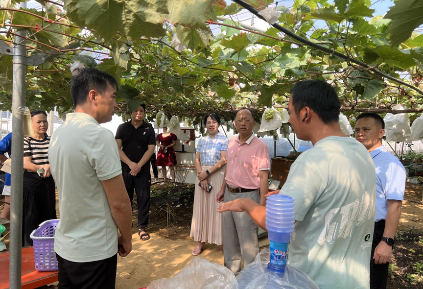 调研组实地了解鹿寨镇呦呦鹿鸣葡萄园当前季度水果生产情况