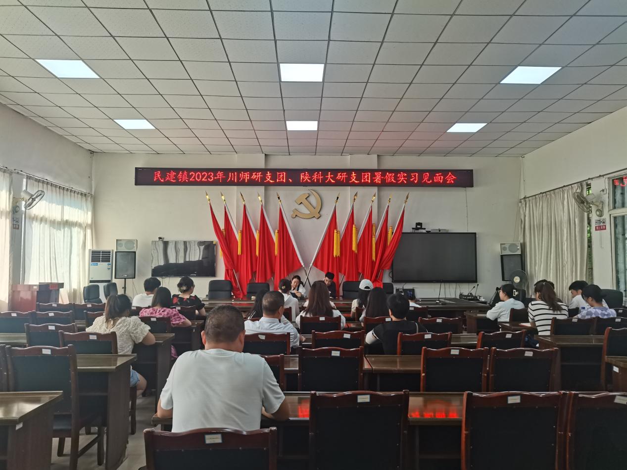 2023年7月18日,民建镇召开川师大、陕科大研支团暑期实习见面会。