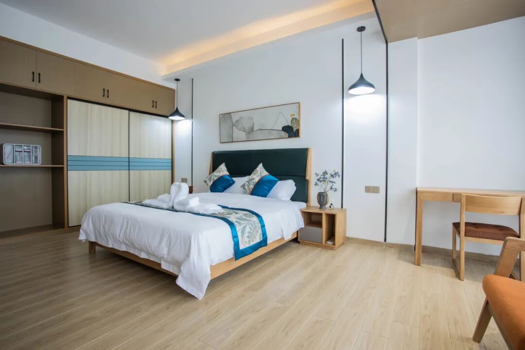 攀岩者之家公寓酒店,以攀岩元素为主题,每套公寓名字都分别展现了一种竞技精神,结合现代简约元素,装饰风格舒适雅致,窗外景致与房间氛围相得益彰。公寓两边为 A 户型,一楼前后有专属小院,类似四合院却又不完全一样,超有故事感,适合与好友结伴或是亲子家庭入住。大面积采用落地玻璃的设计,园区景色尽收眼底,适合与父母或好友同住。