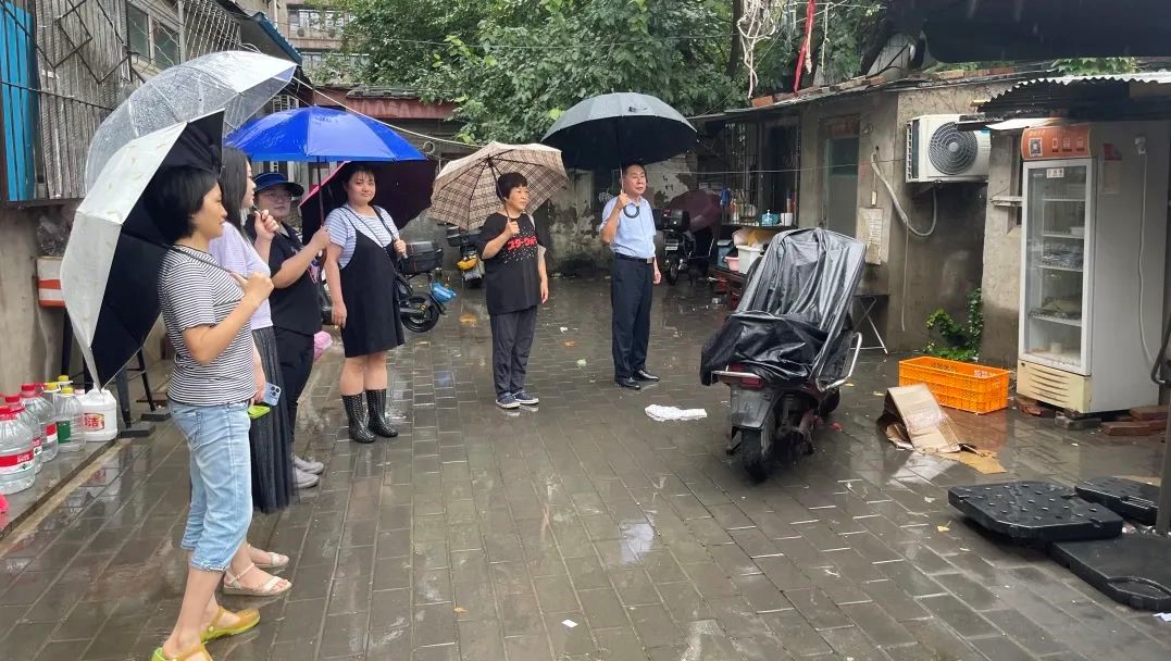 在街道的统筹部署下,各部门、社区、物业等相关单位有条不紊,大雨中坚守岗位,一旦发现问题,立刻上报,第一时间联系处理,切实保证居民的正常生产和生活秩序。