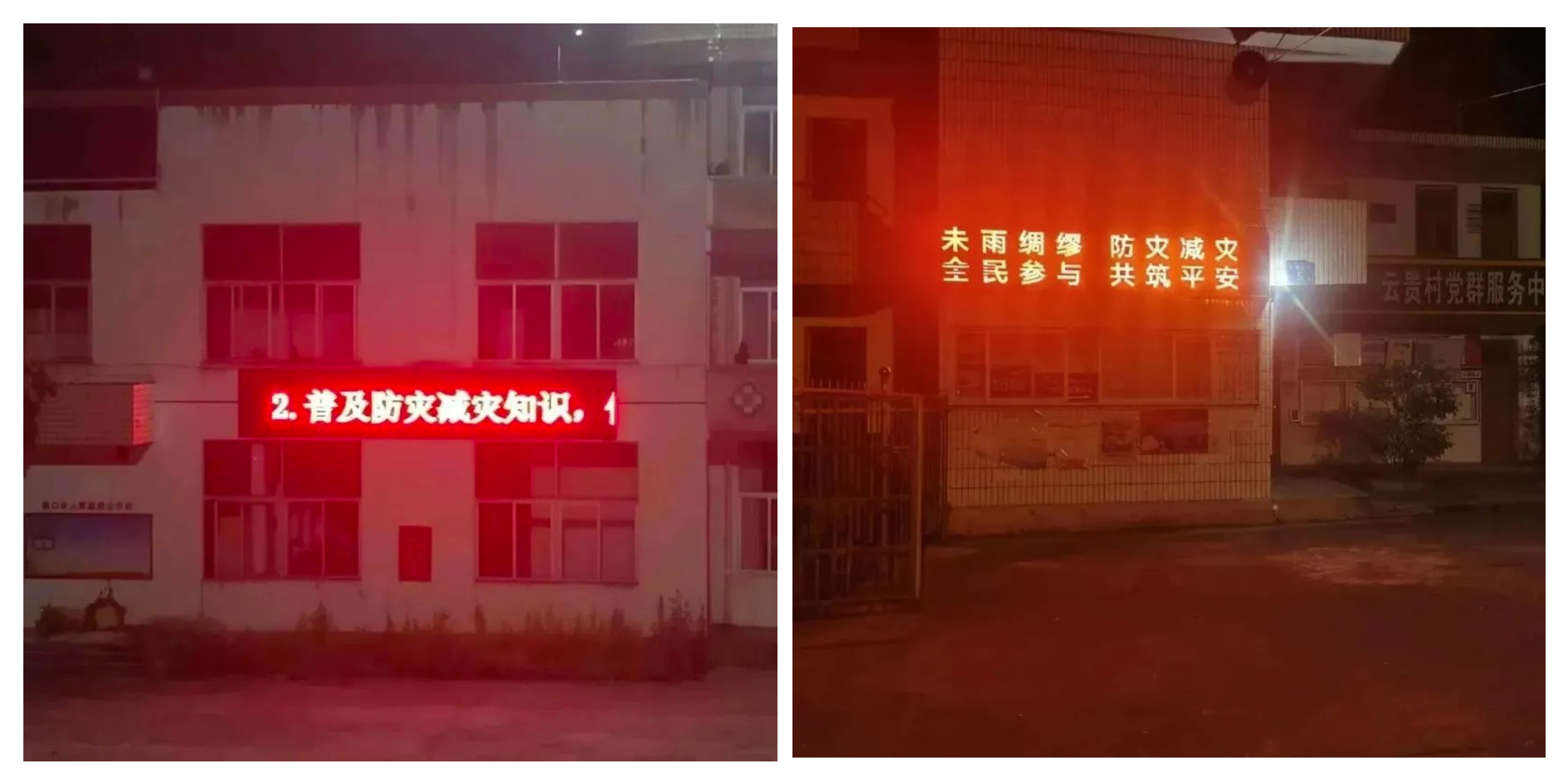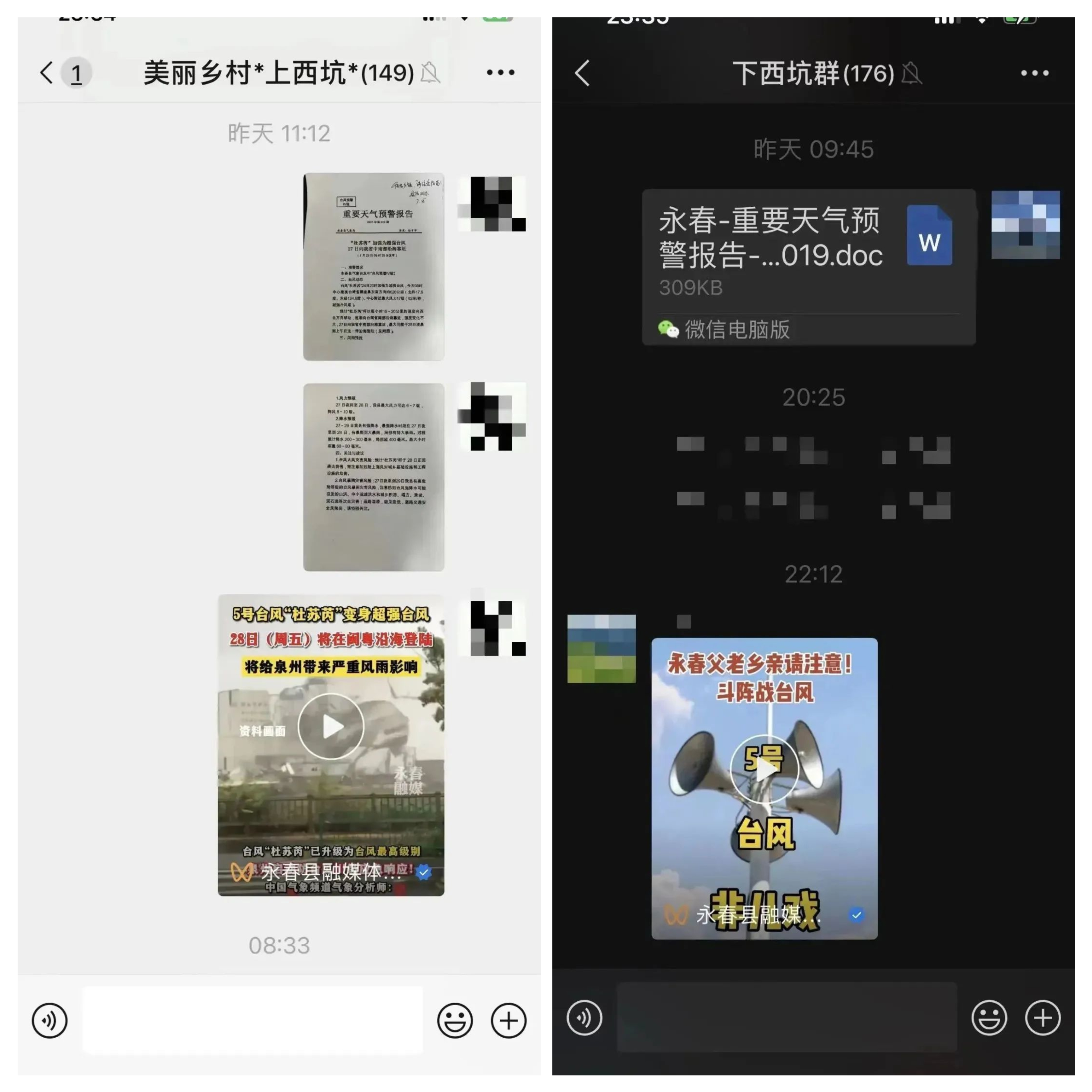 及时在微信群推送转发预防暴雨、地质灾害相关信息及防台风安全指南,增强群众主动避险意识和自救互救能力。辖区内13 块 LED 屏滚动播放防灾减灾标语,10个“村村响”、巡逻车等循环播放抗台风音频,宣传覆盖面近3000人。