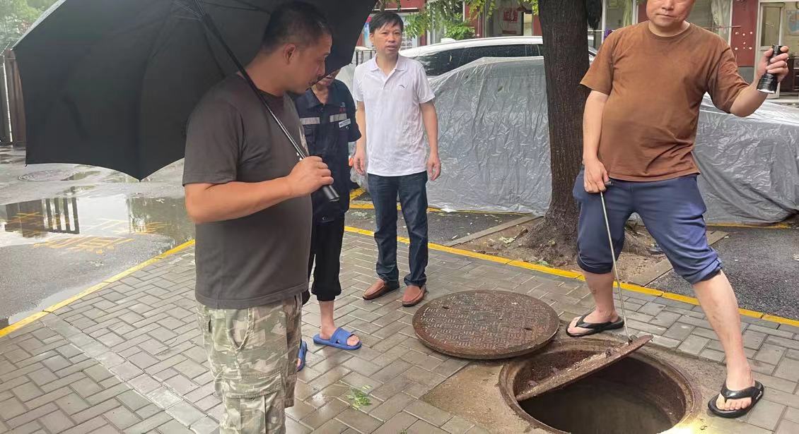 2023年8月1日民族园社区社工在对小区巡查时,发现3号院2号楼地下二层人防设备层出现积水,社区工作人员首先与物业取得联系进一步查看积水情况,查找排污井口,并及时向街道人防办进行报告。得知情况后,街道人防办谭井发带领抢险人员第一时间赶到现场,安装抽水管进行抽水,截至目前排污一直在进行中,积水情况得到有效缓解。