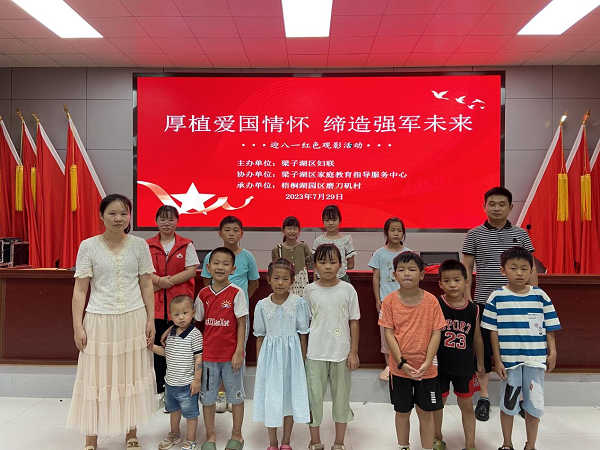 (本网讯)在八一建军节来临之际,为营造浓厚的爱国拥军社会氛围,弘扬民族精神、传播先进文化、树立文明新风,梧桐湖园区磨刀矶村组织未成年人开展“厚植爱国情怀,缔造强军未来”红色观影活动,活动为青少年儿童播放爱国主义题材电影《长津湖》,旨在传承革命火炬,强化爱国主义教育,让红色基因永流传,红色故事润童心。