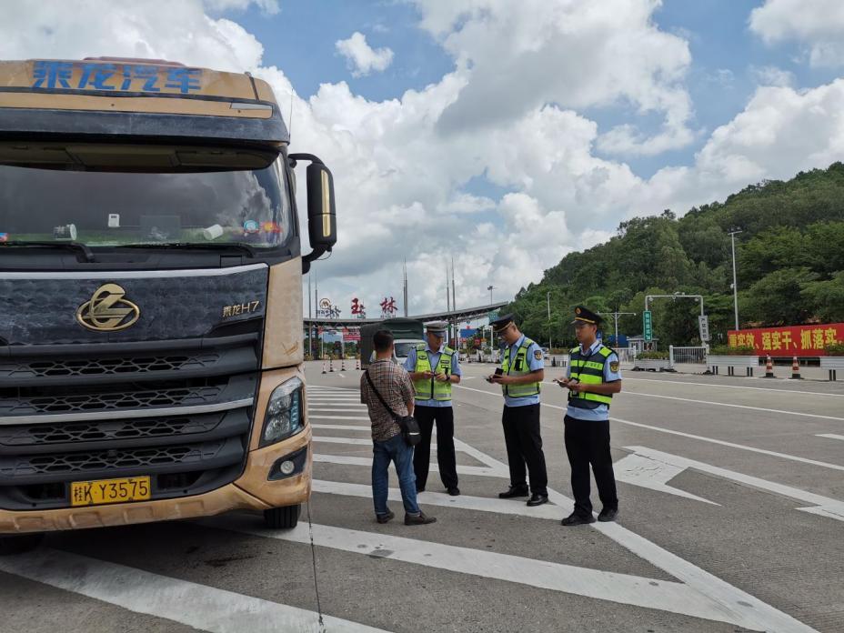 玉林讯(通讯员?庞善)为进一步加大强货车超限超载违法行为打击力度,强化辖区道路交通管控力度安全管理,8月1日至2日,自治区交通运输综合行政执法局第六支队第一大队联合辖区高速交警部门开展“平安货运”专项整治行动,严厉打击货运车辆违法超限运输行为。