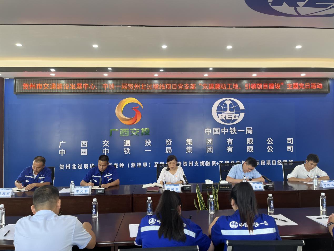 贺州讯(通讯员 刘洪胜)为扎实推进党建与重大工程建设深度融合,强化党员干部廉洁思想教育,7月31日,贺州市交通建设发展中心党支部联合中铁一局集团有限公司第三工程分公司贺州北过境线4标项目党支部开展“党建廉动工地,引领项目建设”主题党日活动。