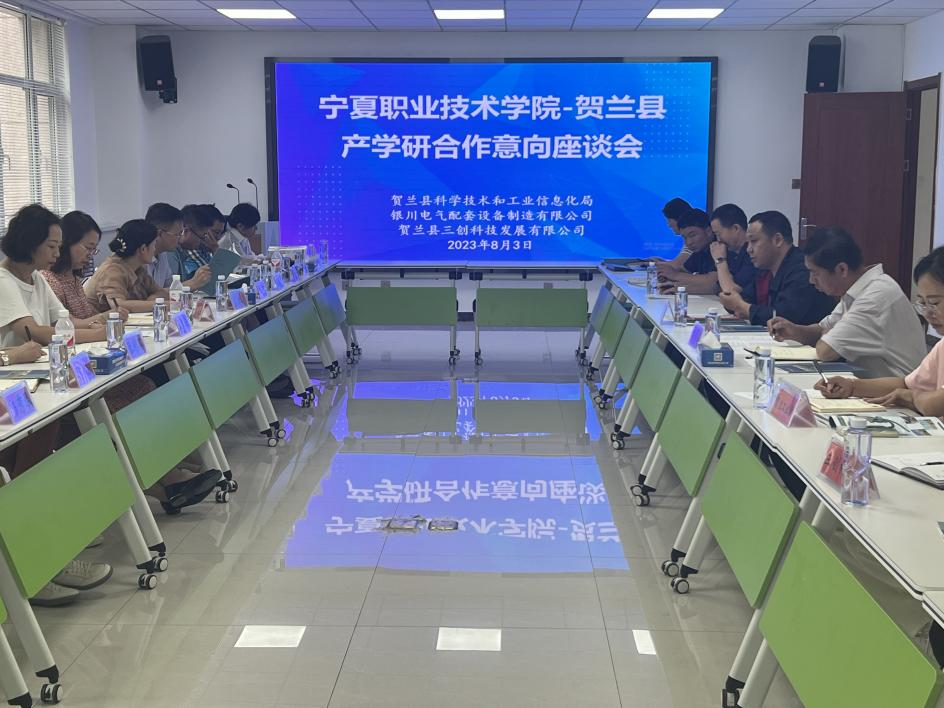 座谈会上,银川电气配套设备制造有限公司负责人就企业概况,产品发展方向进行了介绍;宁夏职业技术学院工业工程学院院长李慧云先后介绍学院优势学科研究,学院层面如何与贺兰县装备制造相关产业展开产学研合作提出了自己的看法,并表达了与贺兰县相关企业开展产学研合作的意愿。随后双方就“产品设计中进行冷却容量核算”、“冷却塔在运行过程中产生的震动”等技术难点进行了现场交流,明确了下一步的合作方向。