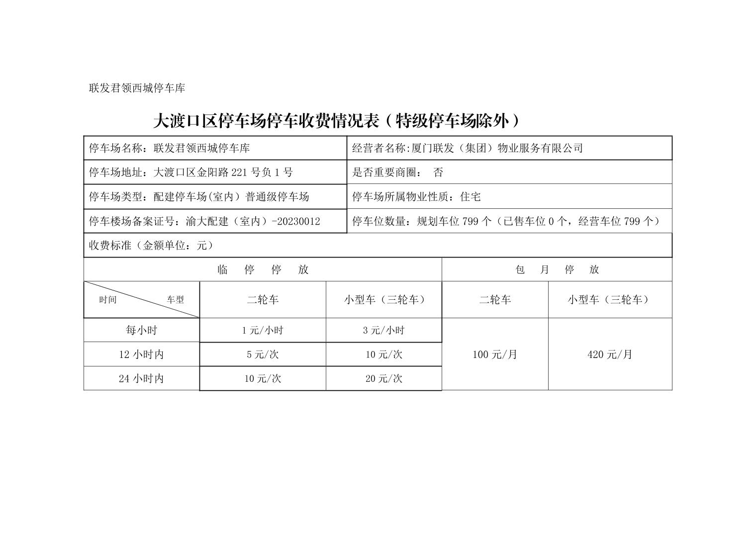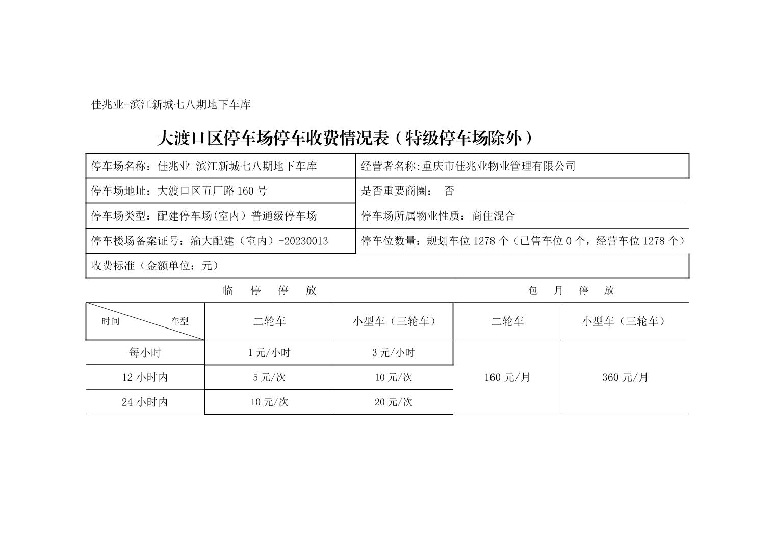 大渡口区停车场停车收费情况表(特级停车场除外)(2023.7.31)