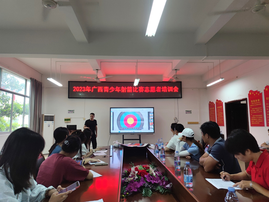 培训会上,赛事组委会向志愿者介绍了2023年广西青少年射箭锦标赛的基本情况,并根据志愿者的工作岗位,有针对性地讲解了岗位工作职责以及相关注意事项;赛事裁判组围绕计分区别、填写规范、失误处理和汇总上传等环节,就赛事计分工作对志愿者进行了专业讲解,并着重强调了志愿者礼仪的重要性。培训还增加了岗位服务模拟实践环节,通过志愿者与裁判组的交流互动,使志愿者熟练地掌握了赛事计分等服务技能。