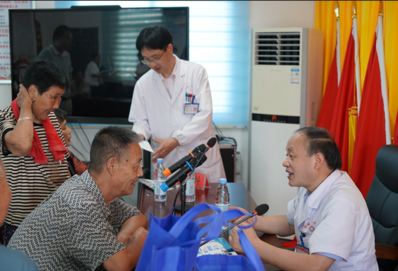 此次健康义诊医疗队由来自宣城市中心医院、舒城县人民医院神经内科、妇科、骨科、眼科、儿科等相关科室的副主任医师组成。活动现场,医疗专家们认真地为到场群众检查身体,了解患者病情,耐心地为他们解答相关疾病的预防和治疗问题。同时,县卫健委、百神庙镇政府、卫生院及官塘村的志愿者们还为群众免费发放降暑用品,积极向群众宣传健康知识。