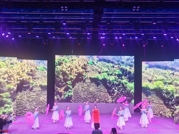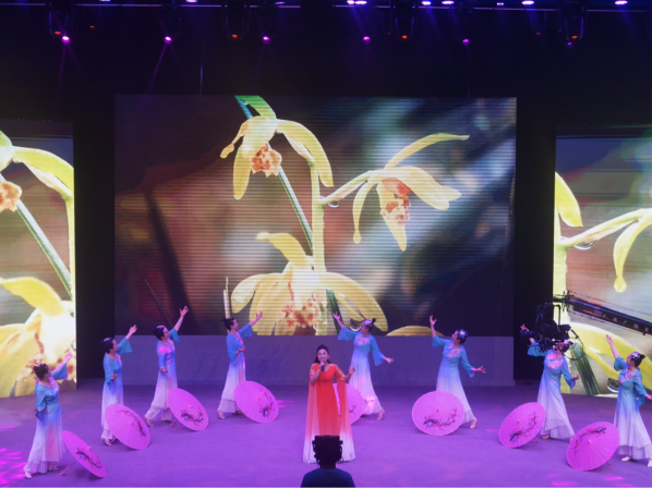 县文化馆选送的黄梅歌《山野的风》,歌手甜美的声音结合舞蹈演员优美的舞姿、灵动的舞步以及配上绿白渐变的服装,仿佛带观众走进了大自然,感受乡村的美景,把整场汇演气氛推向了高潮。