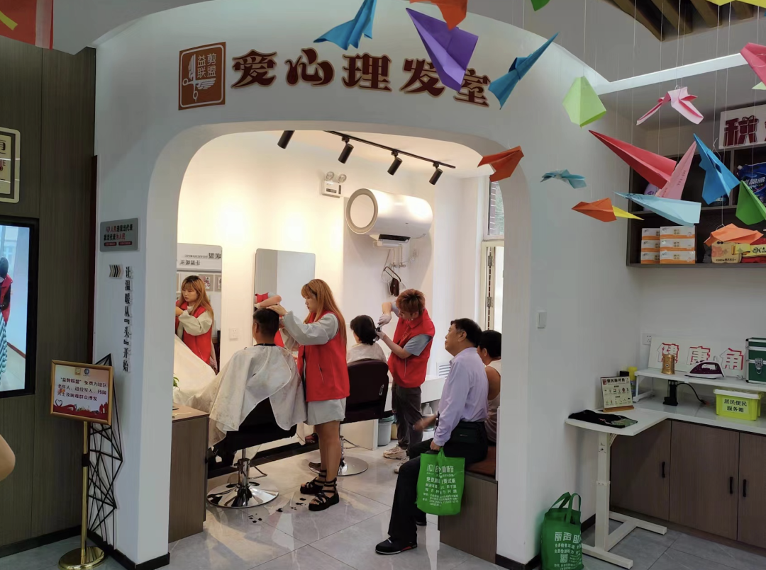每逢星期五,重庆街道光明社区新时代文明实践站益剪联盟的理发师志愿者都会准时来到社区一楼爱心理发室,为社区老年居民提供常态化公益理发服务,用小剪刀传递真情。