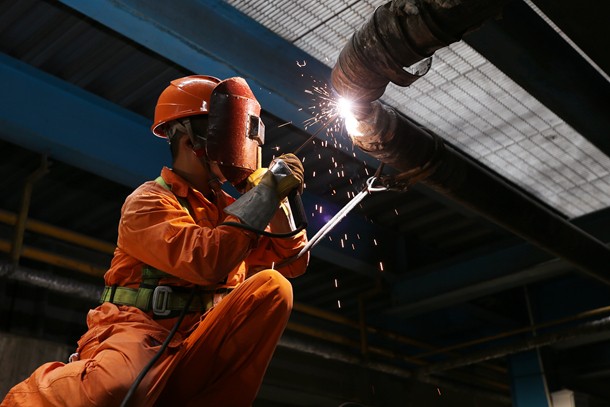 图为四川金堂公司检修人员焊接连续排污管泄漏点