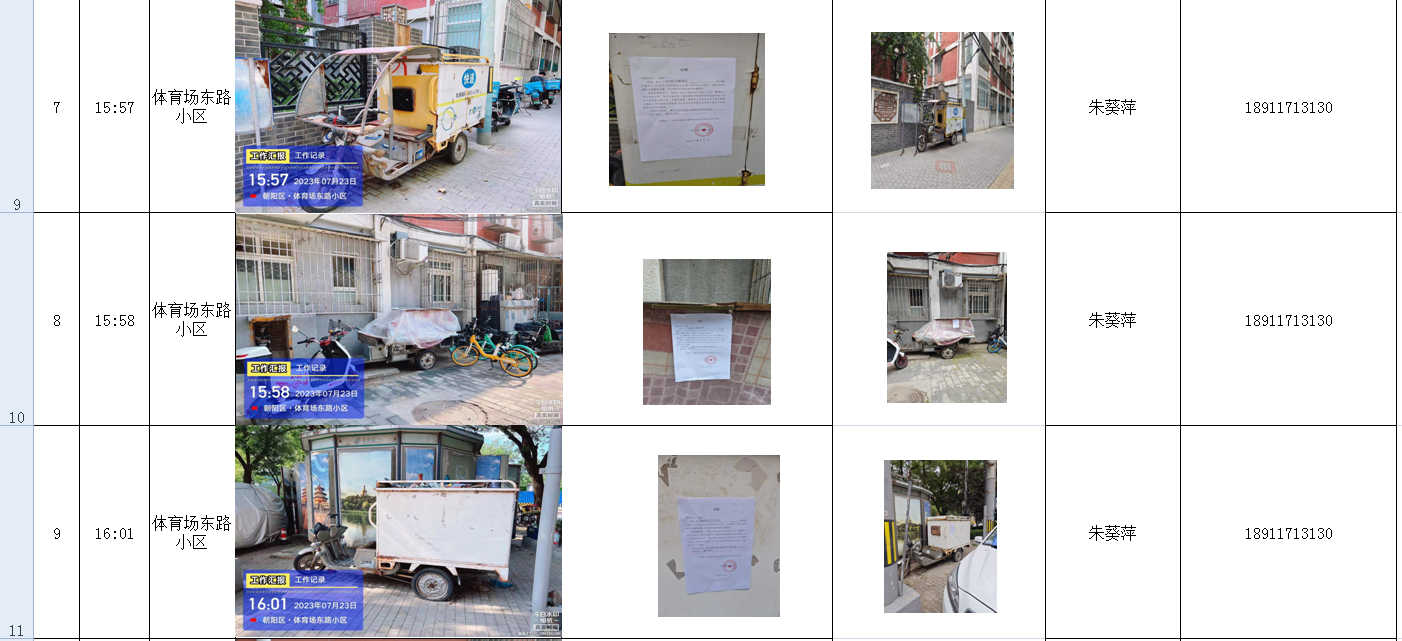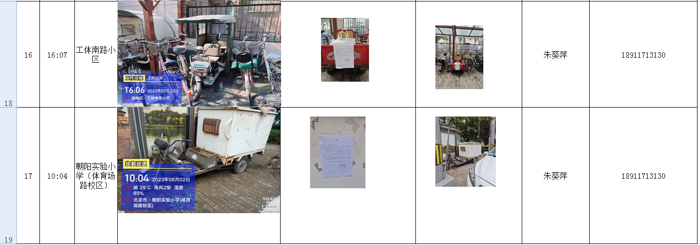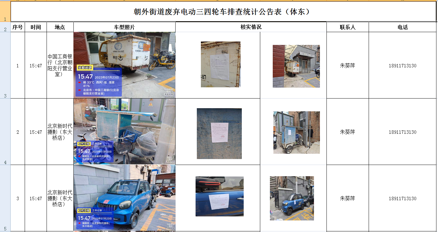 朝外街道废弃电动三四轮车排查统计公告表(体东)