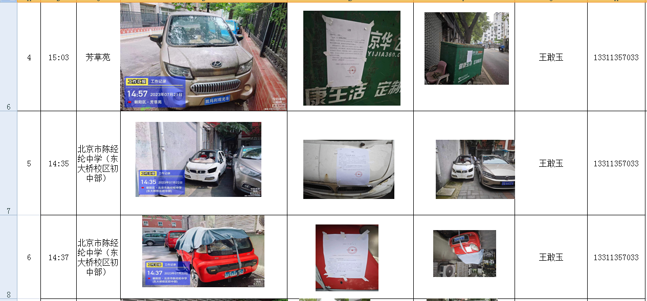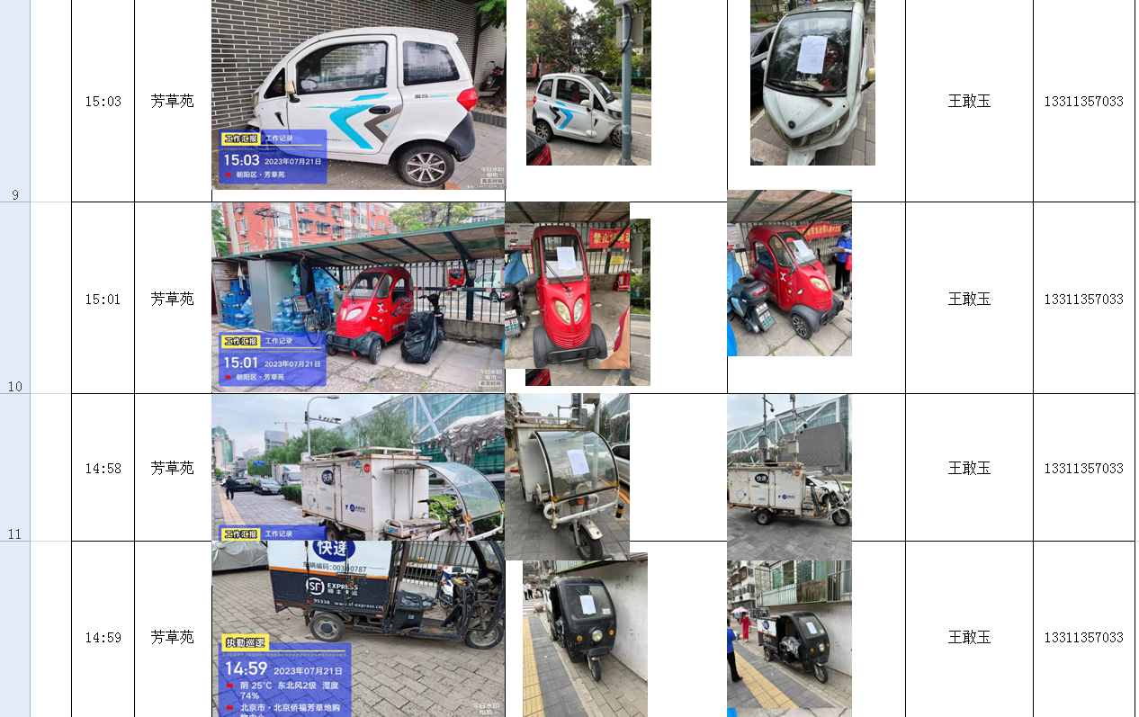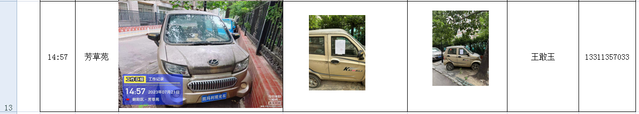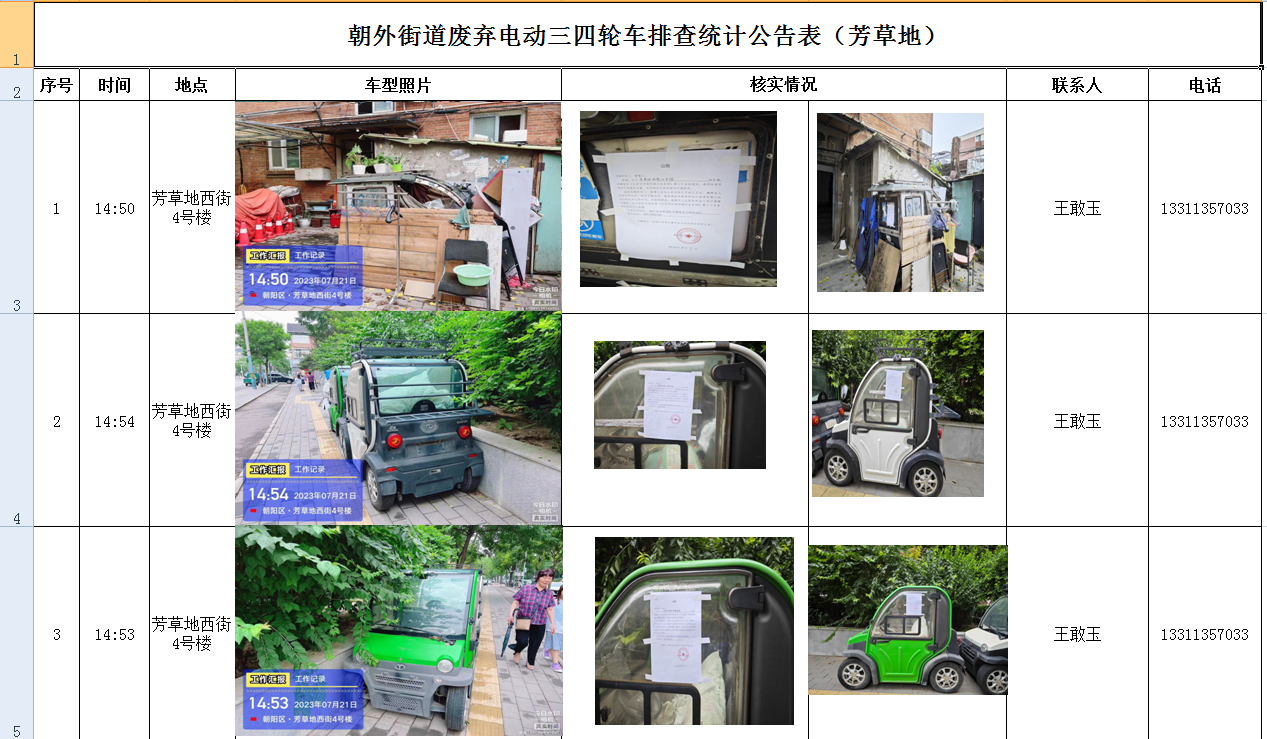 朝外街道废弃电动三四轮车排查统计公告表(芳草地)