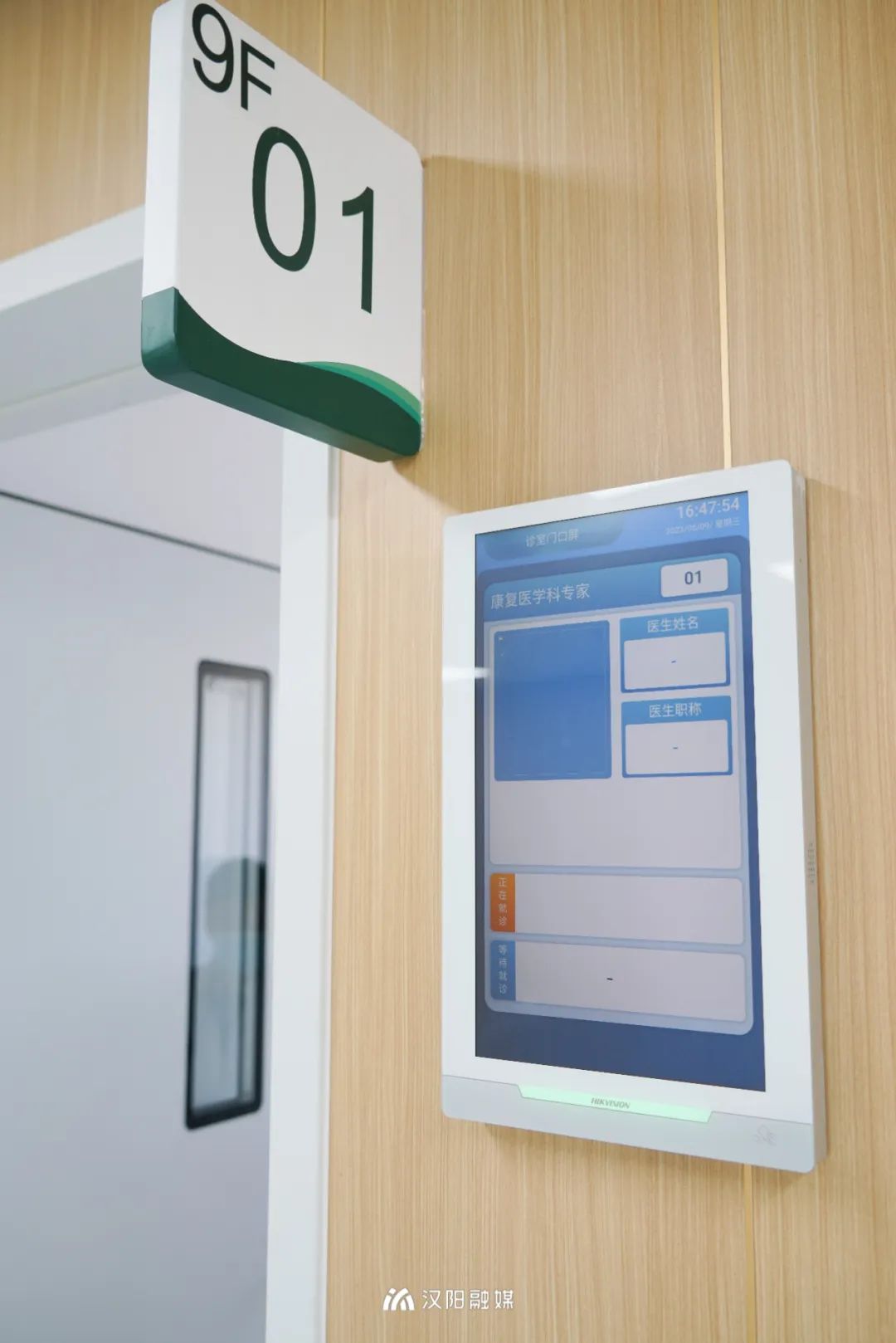 △诊室门口屏,可显示诊室医生信息、患者姓名和等待就诊排队情况等。
