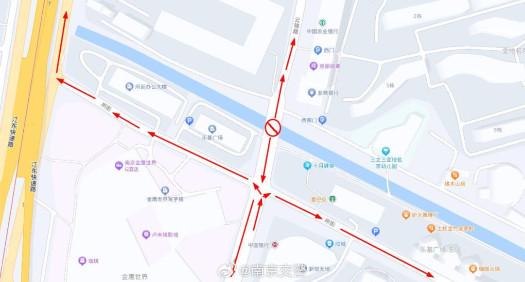 因云锦路道路环境综合整治工程施工需要,自2023年8月14日起至2023年8月29日止,云锦路所街北口桥面段禁止车辆、行人通行,车辆、行人可由应天大街、所街、江东中路、集庆门大街、湖西街等绕行。