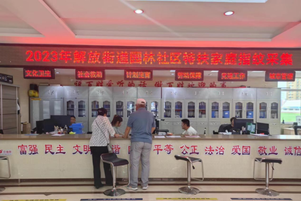 解放街道园林社区计生奖扶家庭指纹信息采集工作