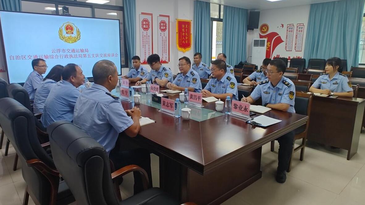 梧州讯(通讯员 王月薇)为推进广东省和广西壮族自治区两地高速公路交通运输综合行政执法领域合作,构建“经验互鉴、执法互动、信息互通、联席互商”的跨区域执法联动工作机制,广东省云浮市交通运输局到广西壮族自治区交通运输综合行政执法局第五支队座谈交流。