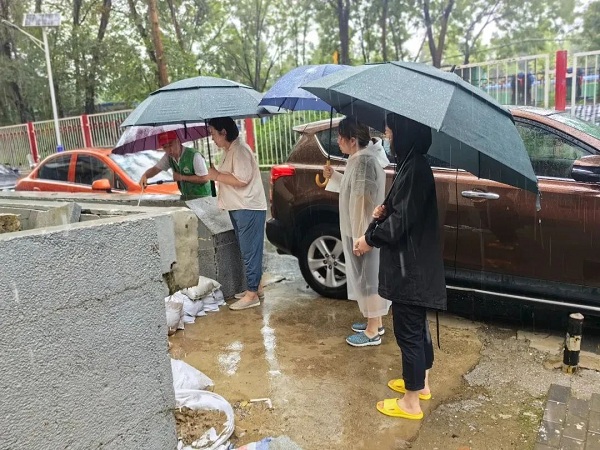 老山东里北社区全体干部分片检查地下室、井盖、地下车库出入口等易堵易返水点位,联合物业工作人员及时发现问题、解决问题,做好排查登记台账,及时消除安全隐患。积极开展汛期安全知识宣传,通过微信群提示、醒目区域张贴告示,提醒居民做好防护工作。