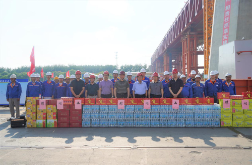 8月10日,集团公司党委委员、副总经理胡敬源一行赴巢马城际铁路CMSG-1标马鞍山长江公铁大桥Z3号墩施工现场开展“送清凉”慰问活动。胡敬源一行向高温下奋战的一线工作人员送上了防暑降温慰问品,并询问工作、生活情况,叮嘱大家要牢固树立安全生产理念,在做好本职工作的同时,注意身体健康。施工单位要切实做好防暑措施,为职工提供必要的防护用品和高温作业休息场所,同时要密切关注防汛抗洪工作,提高防汛应急处置能力,保障项目安全、高质量完成各项工作。