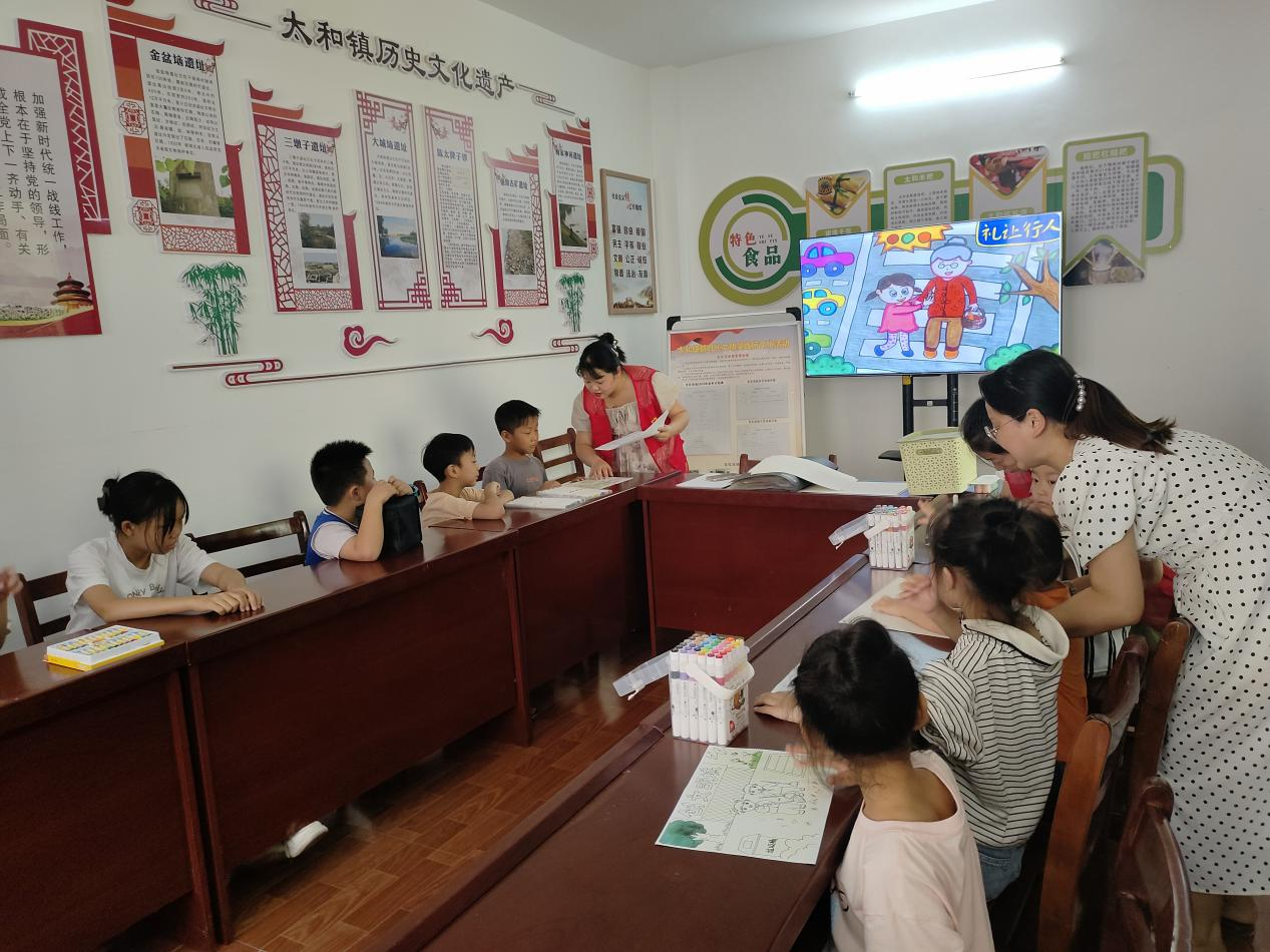 (本网讯)文明是一道蕴含文化的美景。为全面提升广大未成年人文明素养,促进未成年人德智体美劳全面发展。8月15日下午,太和镇新时代文明实践所开展“巧手童心 共绘文明”为主题的绘画活动。