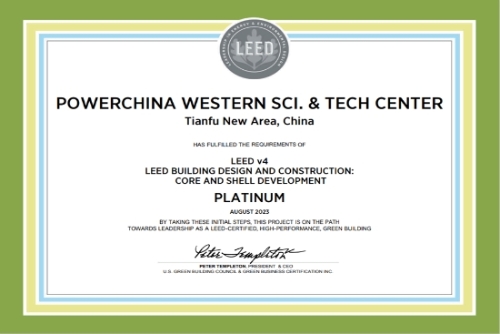 日前,中国电建成都院、中电建建筑、水电七局联合体EPC建设的电建西部科创中心项目,获得LEED珀金奖项,该奖项为国际绿色建筑认证系统的最高奖项。