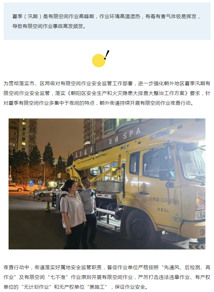 朝外街道持续开展有限空间作业夜查行动