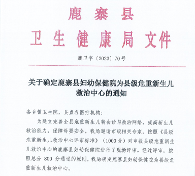 鹿寨县妇幼保健院获批成为“县级危重新生儿救治中心”