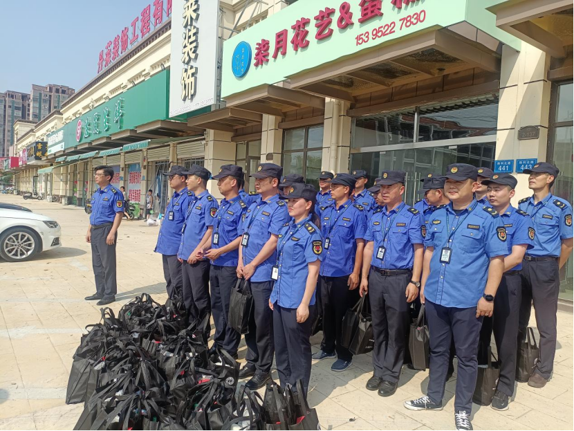 沈明举一行来到城区胜利路张洪府邸小区段,看望慰问高温下坚守工作一线的城市管理工作人员,活动现场,沈明举对一线职工高温态势下奋战一线管理城市的敬业精神予以充分肯定,向一线城市管理人员的辛苦付出表示由衷感谢,叮嘱大家在高温天气下户外工作时要做好个人日常防护,合理安排作息时间,注意劳逸结合,做到安全工作、健康生活。随后向一线职工发放慰问礼包80份,将毛巾、肥皂、白糖、花露水等物品送到他们手中,为他们送去清凉与关心,把党和政府的关怀传递到每一位职工身上。