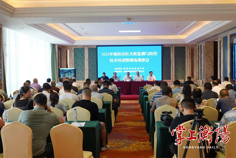 本次会议由市农业农村局主办,市农业技术服务中心承办,旨在贯彻落实习近平总书记关于加强生物安全建设、加大外来物种入侵防控重要指示精神和省委、省政府相关文件精神,加强对红火蚁等重大外来入侵生物的防控和检疫监管,最大限度控制红火蚁发生范围和程度,保障我市农林业生产、生态环境和人民安全。在衡高校、市直相关单位分管领导及红火蚁防控工作负责人,各县(市)区农业农村局分管领导、省植保站站长等百余人参加会议。