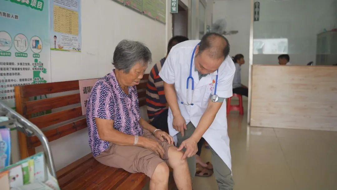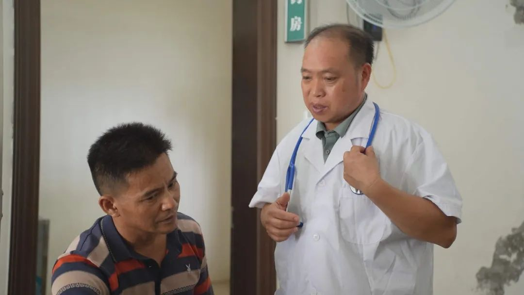 在广西柳州市鹿寨县四排镇江南村的卫生室里,乡村医生覃文荣正耐心地询问着村民熊凤兰近来的身体情况。