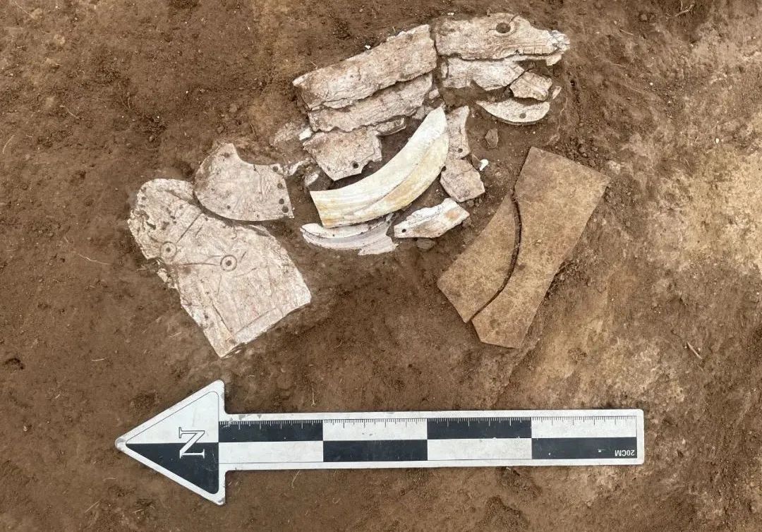 这件蚌饰出土自松山区彩陶坡遗址一座房址的西南角,质地酥脆,考古队员对现场进行了加固处理,将蚌饰连同周围土块整体提取,下一步将聘请专业的文保人员做好拼对、修复和后期保护工作。