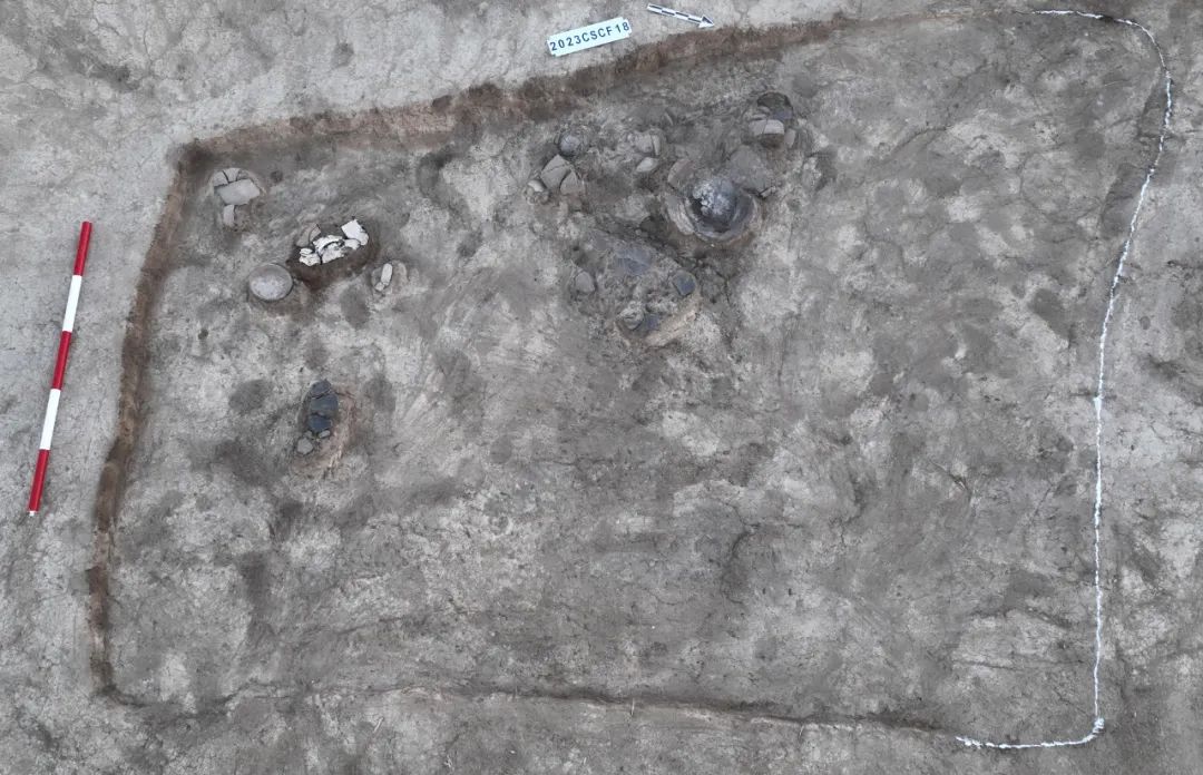 内蒙古文物考古研究院院长孙金松表示,该房址还出土两件可复原陶器,一件是夹砂灰陶饰划线纹筒形罐,一件是夹砂灰陶饰字纹筒形罐,均是典型的红山文化遗物,且年代偏早。另外,龙形蚌饰上扬的尾翼较接近敖汉小山遗址陶尊上所绘鹿纹的尾部,据此推断,该房址及龙形蚌饰的年代应该都在红山文化早期阶段。这件龙形蚌饰与以往发现的红山文化C形玉龙在雕刻手法和造型设计上差异较大。它的手法更为细腻写实,牙齿、尾部等部位都有细微的雕琢摹写,造形也不似C形龙卷曲的风格,而是身体舒展开的龙的形象。