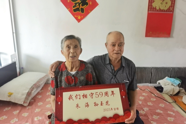 81岁高龄老人朱海向工作人员们说起了他和妻子相识、相恋、结婚、婚后的陪伴故事并感慨道“这辈子磕磕绊绊的也过来了,感谢我的老伴,一直包容我照顾我,未来的愿望就是希望她的身体健健康康,平平淡淡才是福。”