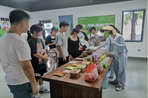 第二站,大学生们来到魔芋产学研创新中心,了解魔芋的前世今生,了解到水头魔芋产业发展的广阔前景。走进产品展示区,休闲食品、速食、美妆用品等多个系列的魔芋精深加工产品,让人目不暇接。