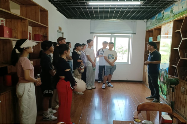 大学生一行从水头镇政府出发,第一站来到广东春中宝蜂业有限公司进行学习参观。企业负责人向大学生讲解企业的基本情况、企业经营产品等。企业负责人鼓励大学生好好学习,将所学专业知识应用社会。