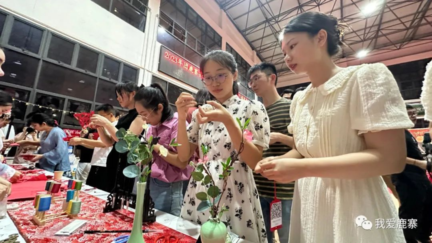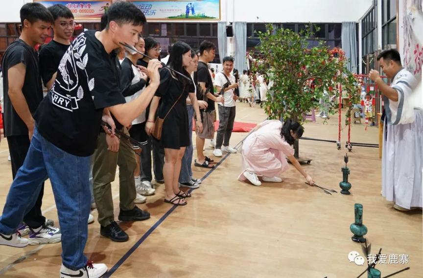 欢快的开场舞《芒种》拉开了活动的序幕。随后,青年们先后展示了精心准备的节目。在互动小游戏环节,大家积极参与活动,“桃花朵朵开”、“击鼓传情”、“牵手木头人”等游戏让青年们在欢声笑语中,驱散初次见面的陌生感。大家可以通过参与活动小游戏赢取铜钱,在所设的“商铺”中购买精美的折扇、香包、吊灯等纪念品。
