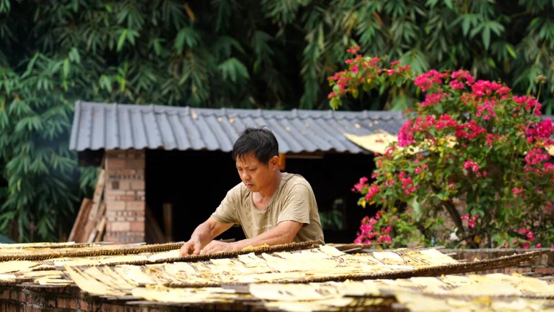 陈德明告诉记者,由于新鲜竹笋的保质期很短,含水量很高,为了方便储存、销售和运输,村民们会将挖回来的竹笋晒成笋干销售。制成笋干要经过多道工序,鲜笋挖回家后,首先需要放进锅中煮上3个小时,再捞起晾干水,接着切片,最后将切好的笋片铺在竹匾上自然晾晒,直至水分蒸发晒成笋干。晒干后的笋片色泽金黄、薄而透明、清甜甘滑,深受外地游客的喜爱。