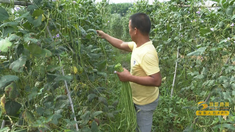 中渡镇石墨村村民罗仿城说:“我种了三亩豆角,一亩大概收成4500斤,一斤大概1.2元,一亩可有收入五六千元。”