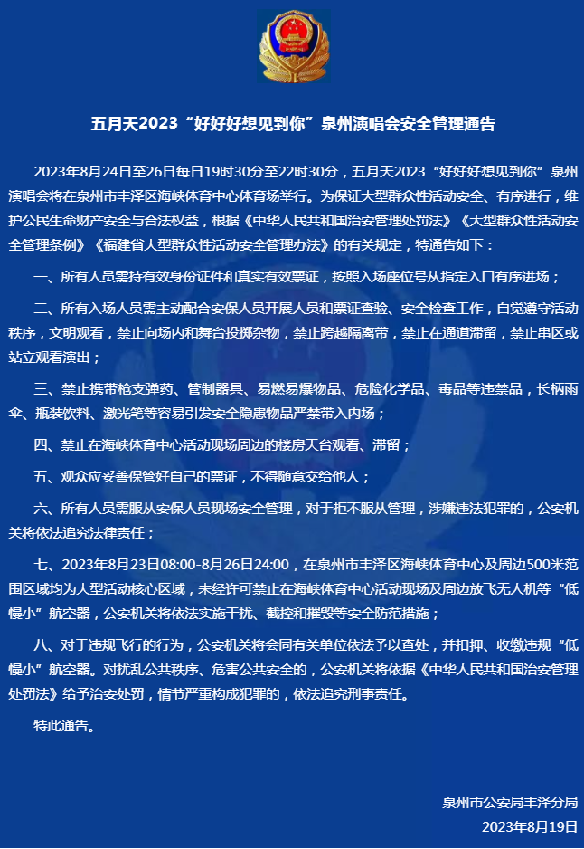 “五月天演唱会”期间,这些安全事项需注意!