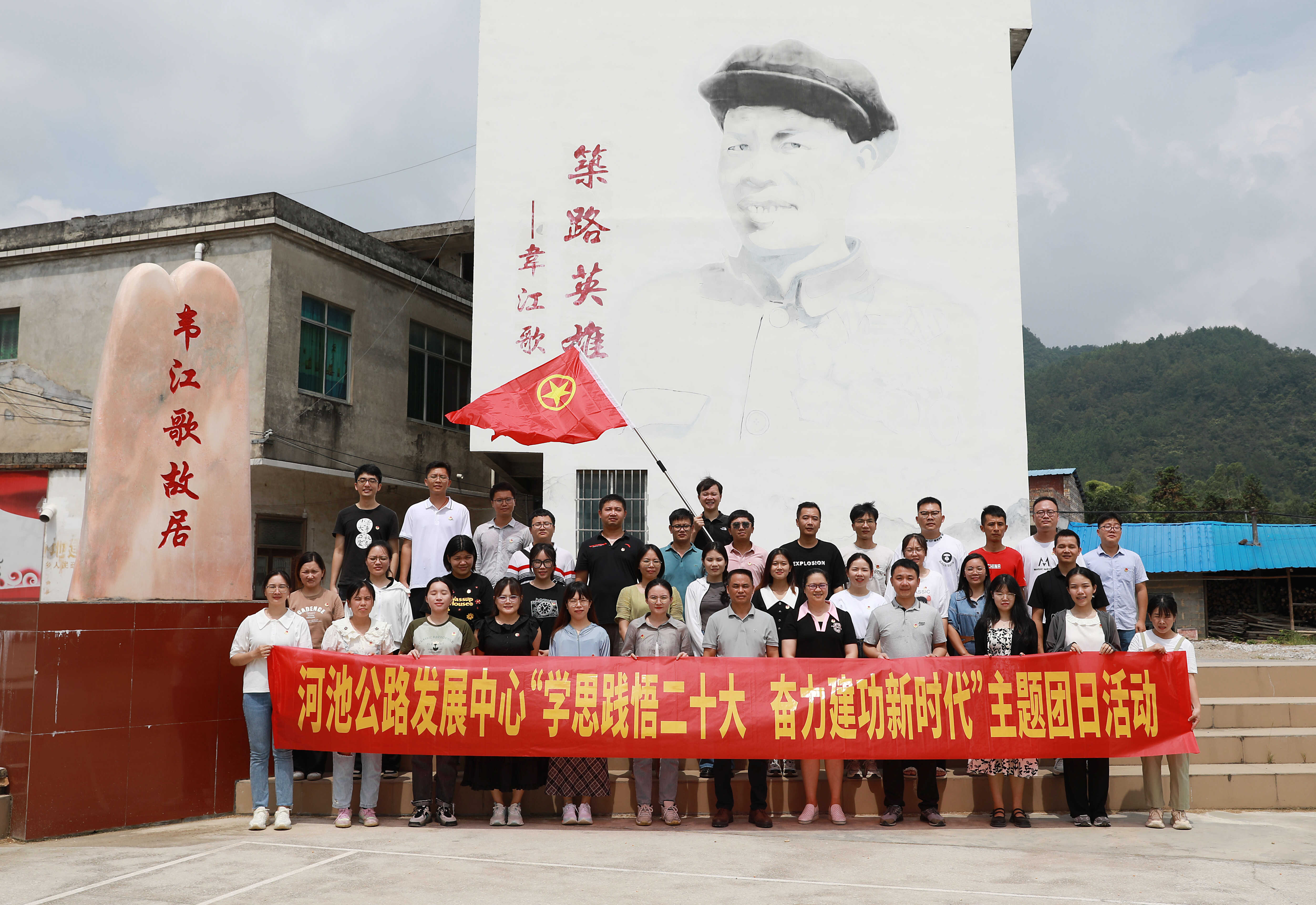 河池讯(通讯员 韦昌学?韦小英 咸玲?摄影报道)近日,河池公路发展中心团委组织全市公路系统青年团员到河池市宜州区,开展“学思践悟二十大 奋力建功新时代”主题团日活动,参观“中国村民自治第一村”合寨村和“全国筑路模范”韦江歌故居,并给团员青年们现场上专题团课。