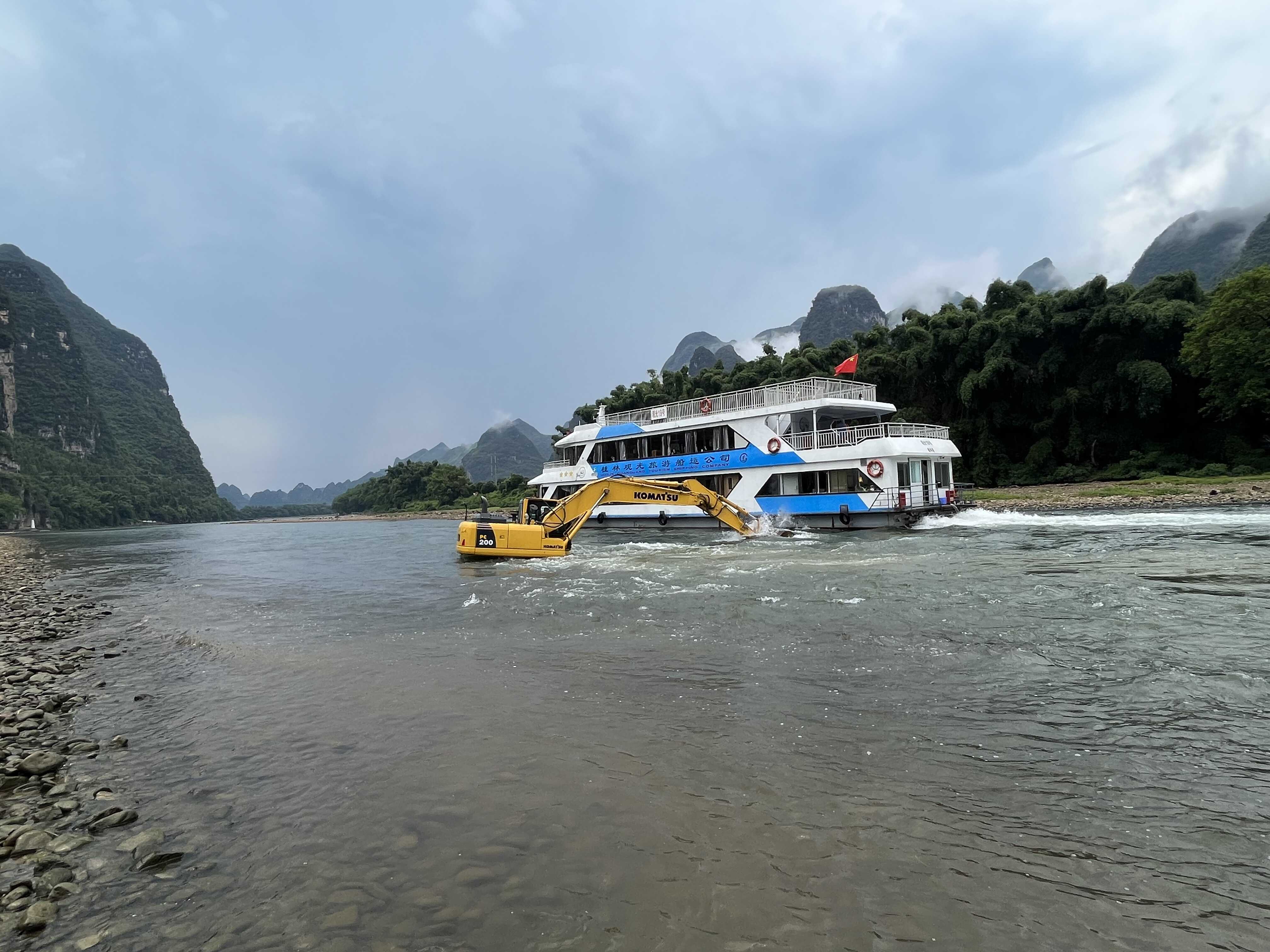 桂林讯(通讯员 冯志勇 摄影报道)近期,受漓江上游降雨量减少影响,漓江水位持续下降,桂林航道养护中心辖区航道提前进入枯水期,多处出现碍航浅点,严重阻碍船舶通航安全。面对水位反常下降与水上客流大幅增长的双重挑战,该养护中心采取有力措施,积极改善航道通航条件,严防发生航道航标责任事故,全力保障漓江航道安全畅通。