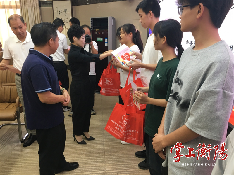 今年,由市委宣传部、市文明办发起和支持,湖南广电交通频道、湖南省南岳电视调频发射台、芒果V基金、湖南森云门业和衡阳市高新区伍界烧烤共同参与的首届衡阳市“雏雁助飞”爱心助学文明实践活动,共筹集爱心助学资金10余万元,资助困难学子20人圆大学梦。在此基础上,活动主办方携手爱心企业再为困难家庭提供40个就业岗位,切实解决困难学子家庭因学致贫、因学返贫的隐忧,让困难学子心无旁骛安心完成学业。