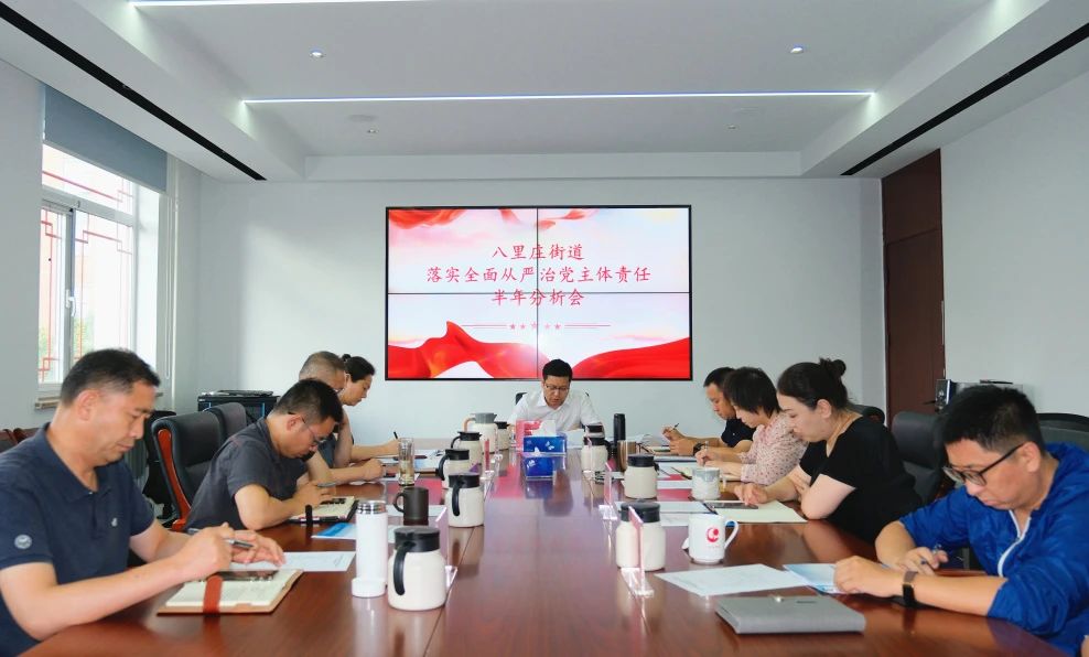 8月24日,八里庄街道召开落实全面从严治党主体责任半年分析会,街道班子成员参与会议。