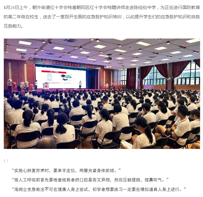 街道送“救命”课进校园 陈经纶540名在校生2小时学会“保命”...