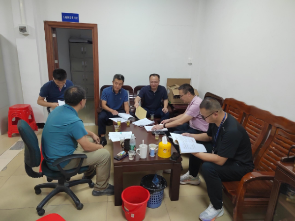 调查组一行前往迳头镇烟岭街,通过实地走访当地群众、查证有关资料及现场勘察等途径了解情况。随后,调查组到迳头镇人民政府综合执法部门查阅河道巡查台账、案件卷宗等资料,对迳头镇综合执法大队提出水行政执法指导意见和建议。