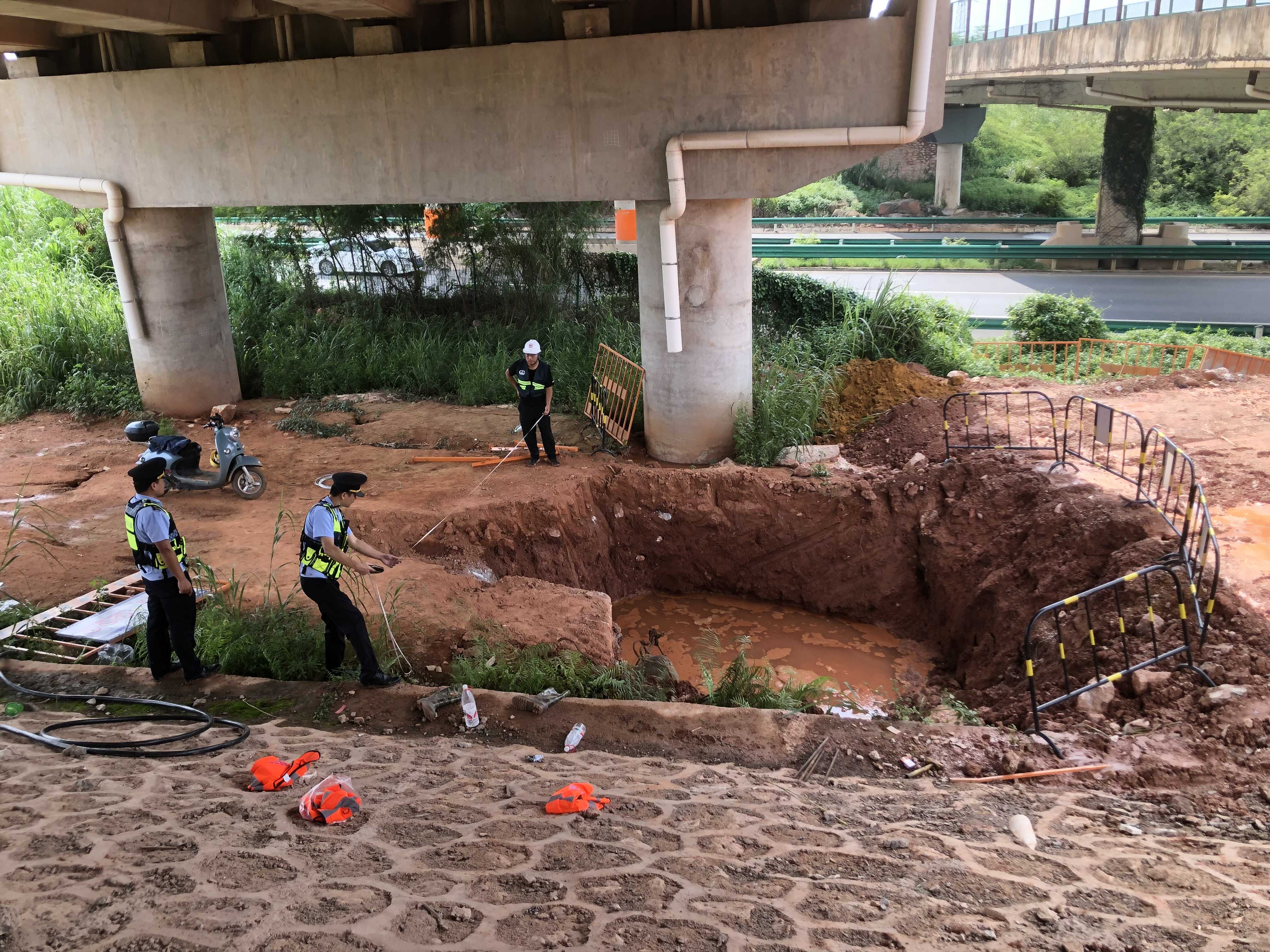 8月24日,该大队在开展执法检查过程中,发现G7201南宁绕城高速公路K1+400处两侧建筑控制区内(一上跨天桥下)有机械在挖坑取土,并损坏了部分安全防护钢丝网。经执法人员调查了解得知,某建筑劳务公司计划将张村至六景公路跨越南宁绕城高速公路的天桥(已弃用)拆除,目前已递交了拆除桥梁的许可申请,但在未取得审批的情况下,擅自在高速公路建筑控制区内施工,开展挖坑取土、地质勘探等施工作业,严重危及高速公路的通行安全。
